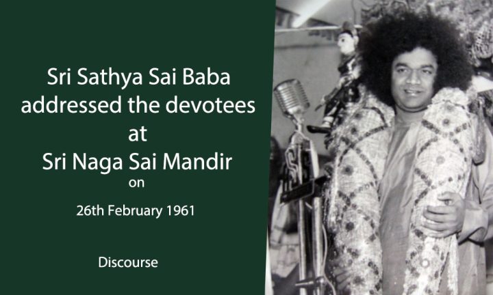 On 26th February 1961, during the Sri Naga Sai Idol Consecration Festival at the Sri Naga Sai Mandir in Coimbatore, Sri Sathya Sai Baba addressed the devotees.…